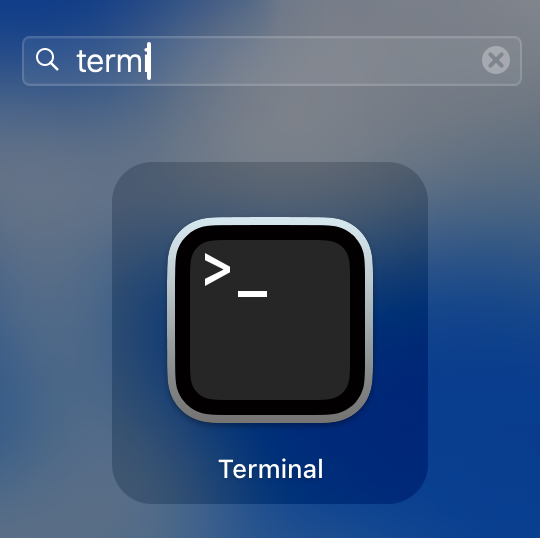 Pour ouvrir un terminal, rendez-vous dans le LauchPad et, dans le moteur de recherche, saisissez les premières lettres du mot « Terminal » :