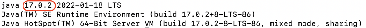 Pour un Tomcat 9, la version de Java doit être supérieure ou égale à 8 (ici 17 sur la copie d'écran) : si c'est le cas, vous n'avez rien à faire et vous pouvez sauter les étapes suivantes et passer à la partie suivante.