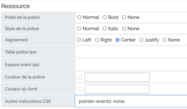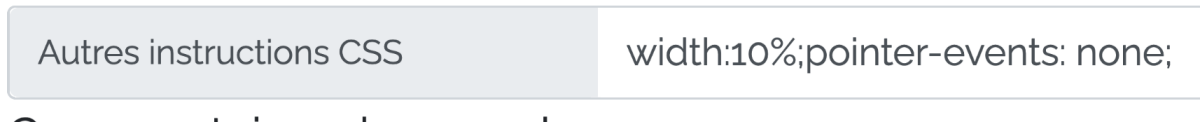 pointer-events: none;sur la ligne « Autres instructions CSS » :Si d'autres instructions existent déjà sur la ligne, il suffit d'ajouter la commande à la fin, après le point virgule :